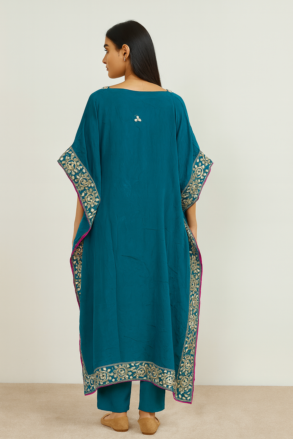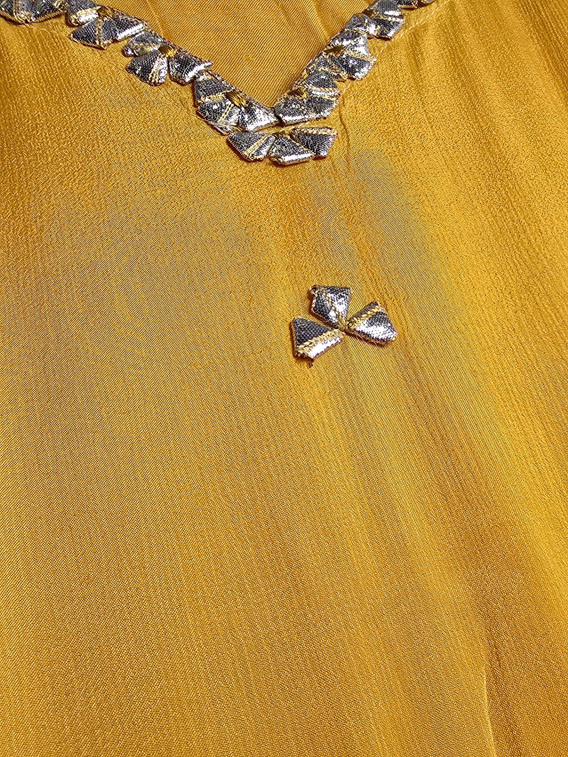 Women’s Pure Chinnon Mustard Embroidered Kaftan with Pants – Festive Wear