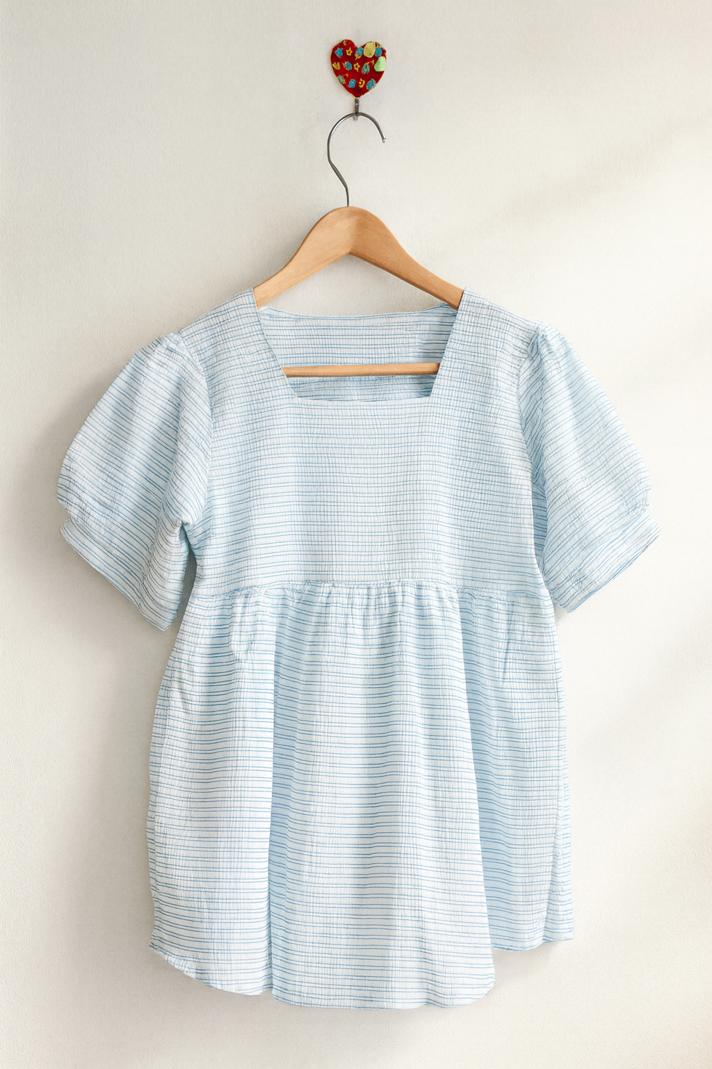 Women’s Cotton Striped Peplum Top with Square Neck & Short Sleeves – Off White
