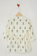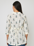 Women’s Cotton Striped Peplum Top with Square Neck & Short Sleeves – Off White
